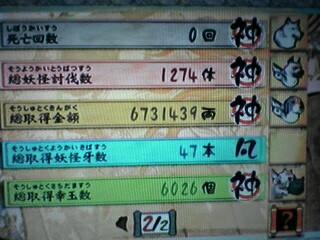 ってもアイテム乱用で反則まがいな勝ち方しておわらせました(笑)したら、総合結果が出るわけですが…ほぼ神だ!!やった~!!!!(写真参照)っつか一つだけ凡なんが悔やまれる…(>_<)